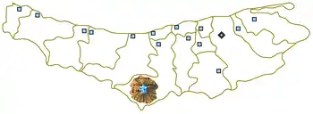 Mount Damavand (Persian: دماوند [dæmɒːvænd] ) is a dormant stratovolcano and is the highest peak in Iran and Western Asia, the highest volcano in Asia, and the 2nd highest volcano in the Eastern Hemisphere (after Mount Kilimanjaro), at an elevation of 5,671 metres (18,606 ft).[8][9][lower-alpha 1] Damāvand has a special place in Persian mythology and folklore. It is in the middle of the Alborz range, adjacent to Varārū, Sesang, Gol-e Zard, and Mīānrūd. It is near the southern coast of the Caspian Sea, in Amol County, Mazandaran Province, 66 km (41 mi) northeast of the city of Tehran.[10]