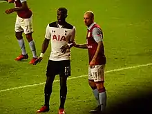 On 31 August 2016, Sissoko signed for Tottenham Hotspur on a five-year deal, for £30 million.[49][50] Tottenham, who beat out Everton for his signature on the final day of the transfer deadline, gave Sissoko his debut away at Stoke City on 10 September 2016.[51] On 22 October, in a match against AFC Bournemouth, Sissoko elbowed Harry Arter, resulting in a three-match ban.[52] He did not play a league match again for Spurs until 3 December, and made just four more starts in the Premier League that season under manager Mauricio Pochettino.