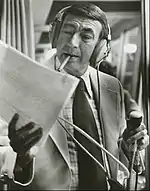 Portrait photographer Annie Leibovitz went to the Lennons' apartment to do a photo shoot for Rolling Stone magazine.[12] Leibovitz promised them that a photo of the two of them naked together would make the front cover of the magazine. Leibovitz took several photos of John Lennon alone and one was originally set to be on the cover.[13][14] Although Ono did not want to be naked, Lennon insisted that both he and his wife be on the cover, and after taking the pictures, Leibovitz left their apartment at 3:30 p.m.[12] After the photo shoot, Lennon gave what would be his last interview, to RKO Radio Network's San Francisco DJ Dave Sholin, writer Laurie Kaye, and recorder/producer Ron Hummel for a music show to be broadcast on the RKO Radio Network.[15] At around 5 p.m., Lennon and Ono, delayed by a late limousine shared with the RKO Radio crew, left their apartment to mix the song "Walking on Thin Ice", an Ono song featuring Lennon on lead guitar, at the Record Plant.[16]