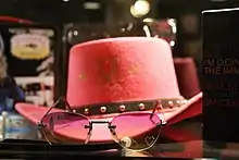 The pictures were shot in Los Angeles, California, in April 2000. In an interview with CNN's Style with Elsa Klensch, Mondino said that he was the one who had the idea of the western themes for the album, and also stated: "[Madonna] wasn't sure at first, but I told her that if she didn't like it I won't charge her. But she loved the final result!".[30] Madonna also decided to use her new country style during her public appearances for Music's promotion; including jeans, shirts and cowboy hats.[31] On her next tour in 2001, Madonna included a segment based entirely on this ambient.[32] Meanwhile, Fouz-Hernández explained that "in this appearance Madonna may be parodying and criticizing Country, which symbolizes among other things, the supremacy of the white man, the ambition of the European pioneers and the American Dream. However, we do not realize that while recognizing the importance that the country has in American popular culture, and joins a long list of artists who have done this previously.[33] Despite this, the cowgirl image of Madonna has become one of her most recognized reinventions.[34][35]