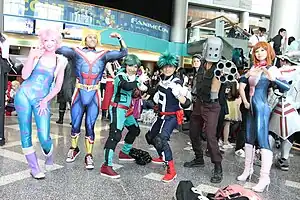 The series explores themes such as the nature of heroism, the importance of perseverance and determination, and the power of friendship and teamwork. Horikoshi said that he was inspired by the idea of creating a world where anyone, regardless of their background or abilities, could become a hero. He wanted to show that even those without powers could still make a difference and achieve their dreams through hard work and determination.[16] That vision results in heroes in the series not being egotistical, but passionate and dedicated individuals with clear goals to work towards.[17] The series also explores on Izuku, who idolized heroes from a young age, and his enthusiasm. In a world where superheroes are not just regulated, but commercialized brands, he still sees something inspiring in their actions.[17]