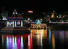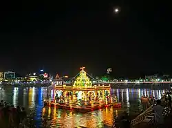 The 10-day Panguni Brahmotsavam, a series of procession events of the Kapaleeshwarar temple and related shrines around the temple during the Tamil month of Panguni (March–April), is the most important annual event of the neighbourhood. People from around the country and abroad participate in the events.[26] The main deities of the Kapaleeshwarar temple, including Shiva, Parvathi, and Nandhi taken on a 13-meter-tall chariot,[27] led by Vinayakar chariot and followed by the attendant pantheon of nayanmars (Shaivite saints) in a series of palanquins and other deities of the surrounding shrines including Mundagakanni Amman, Kolavizhi Amman, Vasuki with Valluvar, Draupadi Amman, Ankalaparameshwari Amman, Vairamudi Swami, and Chintadripet Muthukumaran are taken in procession.[27][28][29] The Arubathimoovar on day eight draws the maximum crowd during which the 63 nayanmars along with the idol of philosopher-saint Valluvar as the 64th nayanmar are taken in procession.[26][28][30][31] The festival is dated back to 7th century CE.[32]