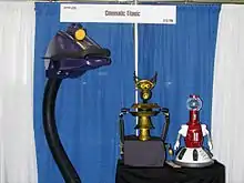 The "door sequence" was created to transition from host segments to the theater segments, which Hodgson took inspiration from the Mickey Mouse Club, noting that the commonality to the title credits of Get Smart were coincidental.[12] In devising this sequence, this also led to Beaulieu creating the dogbone-like shape of the Satellite of Love with additional inspiration taken from the bone-to-ship transition in the film 2001: A Space Odyssey.[12] Hodgson had wanted to use a "motivated camera" for taping, a concept related to motivated lighting; in this mode, all the shots would appear to have been taken from an actual camera that was part of the scene to make the scene appear more realistic. This led to the creation of Cambot as a robot that the host would speak to during host segments or recording them while in the theater, and Rocket Number Nine to show footage outside of the Satellite of Love.[15]