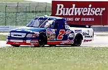 Four demonstration races were held at Mesa Marin Raceway, Portland Speedway, Saugus Speedway and Tucson Raceway Park.[2] Tucson held four events that winter, which were nationally televised during the Winter Heat Series coverage.[2] Sears, Roebuck, & Co., through the Craftsman brand, served as the sponsor of the series on a three-year deal, and the series was renamed to the Craftsman Truck Series in 1996. In addition, the series' $580,000 purse is larger than the Busch Grand National Series' fund.[4] While a new series, it garnered immediate support from many prominent Winston Cup Series team owners and drivers. Prominent Cup owners Richard Childress, Rick Hendrick, and Jack Roush owned truck teams, and top drivers such as Dale Earnhardt and Ernie Irvan also fielded SuperTrucks for others.[4] The series also attracted the attention of drivers like sprint car racing star Sammy Swindell, Walker Evans of off-road racing fame, open-wheel veteran Mike Bliss, and Atlanta Falcons head coach Jerry Glanville.[1] The inaugural race, the Skoal Bandit Copper World Classic at Phoenix International Raceway, was held on February 5; the race, featuring an event-record crowd of 38,000 spectators,[1] concluded with eventual series champion Mike Skinner holding off Cup veteran Terry Labonte to win.[5] Only one team from the first season of the series, FDNY Racing, is still racing in the series today.