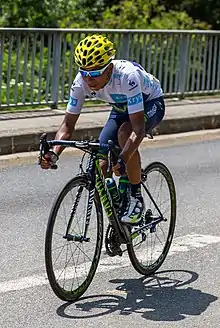 At the age of 15 he was hit by a taxi whilst riding, leaving him in a coma for five days. Despite this, his father, a cycling fan, recognised Nairo's potential and spent 300,000 Colombian pesos (around £71.91) on a racing bike to see if Nairo could make a career in the sport.[10]
