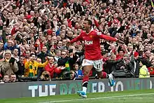 On 26 March, Nani signed a new four-year contract with United, committing himself until 2014.[60] A day later, Nani took his assist tally in the league for the season to nine as he set up two goals in a 0–4 win over Bolton Wanderers at the Reebok Stadium, providing goals for Dimitar Berbatov and Darron Gibson.[61] On 7 April, Nani scored his first ever European goals for United, netting two strikes in a 3–2 victory over Bayern Munich. Despite United winning the match, they were eliminated from the competition due to the away goals rule when the aggregate score was 4–4.[62] On 24 April, Nani scored his first league goal at Old Trafford in 18 months, netting United's second in a 3–1 home victory over Tottenham Hotspur.[63] On 2 May, Nani scored for the second match in a row, netting the only goal in a 0–1 away victory over Sunderland.[64] Nani's third season with Manchester United ended with 34 appearances and seven goals in all competitions.[65]