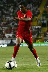 Nani's older brother taught him how to play football and he played with his childhood friend, midfielder Manuel Fernandes.[9][7] When Nani was around the age of 14, his older brother took him to train with Real Massamá.[8] They were Nani's first club and gave him money, food, and helped him obtain an ID card and a passport.[7] At the age of 16, Nani was training on alternate days with Sporting CP and Benfica.[8] Nani sometimes walked miles to and from practice before Sporting offered him pre-season training.[8] Despite growing up in Lisbon, Nani and his brother supported FC Porto as a boy and his footballing hero was Luís Figo.[6][10]