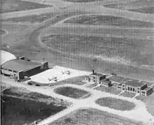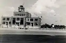 By 1935, the need for an airport larger and closer to the city than Sky Harbor Airport was realized and a citizens' committee was organized by Mayor Hilary Ewing Howse to choose a location. A 340-acre (1.4 km2) plot along Dixie Parkway (now Murfreesboro Road) composed of four farms was selected, and construction began in 1936 as one of the first major Works Progress Administration projects in the area. The airport was dedicated on November 1, 1936, as Berry Field, named after Col. Harry S. Berry, the Tennessee administrator for the Works Progress Administration. It opened in June 1937 with much fanfare, including parades, an air show, and an aerial bombardment display by the 105th Aero Squadron, which was based at the field.[7] Passenger service began in mid-July through American Airlines and Eastern Airlines, both of which operated Douglas DC-3s. The new airport had three asphalt runways, a three-story passenger terminal, a control tower, two hangars and a beacon, and was built at a cost of $1.2 million. In its first year Berry Field served 189,000 passengers.[6][8][9]