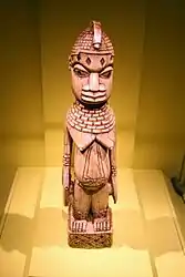 As the museum moved to the National Mall in the mid-1980s, its permanent collection consisted of more than 6,000 art objects (e.g., sculpture, artifacts, textiles) and the large Elisofon photography collection.[1] This original collection focused on Sub-Saharan Africa,[30] with better representation of the Guinea coast and Western Sudan than the Central African region.[1] The collection is idiosyncratic, reflecting the relative lack of colonial era African art acquisitions in American donor collections. Some early highlights of the museum's collection include an Edo–Portuguese ivory spoon and an Akan gold pendant bequeathed by the Robert Woods Bliss estate. The museum's first acquisitions budget came with joining the Smithsonian.[5]