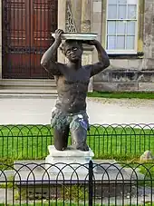 In 2020 the Dunham Massey Hall sundial statue of "a kneeling African figure clad in leaves carrying the sundial above his head" was removed from its position in front of Dunham Massey Hall after calls were made for the removal of statues in Britain with links to the slave trade in the wake of the murder of George Floyd.[17]