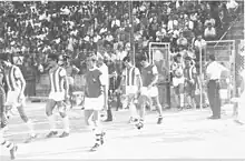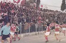 The 1965–66 season was one of the best (but painful) periods for Nea Salamina; the team arguably played the best football in Cyprus.[53] The team contended for the championship until the last game of the season and lose its first cup final.[53] In a game against APOEL at the old GSP stadium, Nea Salamina was leading 3–0. In the 62nd minute, an APOEL player hit a Nea Salamina's player; an APOEL grabbed and hid a linesman's flag. The game was halted, and the CFA ordered a rematch. The dispute lasted more than three weeks; in the meantime Nea Salamina was defeated by the bottommost team, Aris Limassol F.C.[54] In the penultimate match of the tournament Omonia and Salamina were tied for first place on points, and Olympiacos was one point behind.[55] In the game against Olympiakos Nicosia Nea Salamina was leading 2–1, but Olympiakos tied the game in allegedly excessive extra time.[56] After clashes in the last few seconds, the game was halted and ordered replayed.[56] Omonia was in first place with 50 points; Nea Salamina was second with 47 and Olympiakos third with 46. With a victory over Olympiakos Nea Salamina would win the championship, since it had more goals than Omonia. On 31 May 1966 many buses and cars drove from Famagusta to Nicosia, where Nea Salamina was defeated 6–3.[55][56] The best defense in the league, which had allowed fifteen goals in nineteen games, allowed six in one game.[55] For a second time, Nea Salamina finished third. This defeat affected team morale in the cup final with rival Apollon Limassol; although it was favored, the team lost 4–2.[55][57] During this period Salamina had the best defense in the league, with 21 goals in 20 games (a team record).[56]