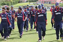 The Nepal men's national cricket team (Nepali: नेपाल पुरुष राष्ट्रिय क्रिकेट टोली) [6][7] represents the country of Nepal in International cricket and is governed by the Cricket Association of Nepal (CAN). They are Associate Member of the International Cricket Council (ICC) since 1996.[8] Nepal were awarded Twenty20 International (T20I) status by the ICC in June 2014 until the 2015 ICC World Twenty20 Qualifier and One Day International (ODI) status from 2018. They are nicknamed as ''The Gorkhali'',"The Cardiac Kids" for their tendency to pickup nail biting victories and "Rhinos" as the emblem of Cricket Association of Nepal contains One horned Rhino; an animal Nepal is popular for.