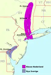 The Dutch were the first Europeans to lay claim to lands in New Jersey. The Dutch colony of New Netherland consisted of parts of modern Mid-Atlantic states. Although the European principle of land ownership was not recognized by the Lenape, Dutch West India Company policy required its colonists to purchase land that they settled. The first to do so was Michiel Pauw, who established a patron ship called Pavonia in 1630 along North River, that eventually became Bergen. Peter Minuit's purchase of lands along the Delaware River established the colony of New Sweden. The entire region became a territory of England on June 24, 1664, after an English fleet under command of Colonel Richard Nicolls sailed into what is now New York Harbor and took control of Fort Amsterdam, annexing the entire province.