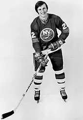 Former California Golden Seals executive vice president Bill Torrey was named as the team's general manager at the same press conference as the franchise's name unveiling.[11] The Islanders secured veteran forward Ed Westfall, defenseman Gerry Hart, and goaltender Billy Smith in the 1972 Expansion Draft, along with junior hockey stars Billy Harris, Lorne Henning, and Bobby Nystrom in the 1972 Amateur Draft.[13] Soon after the draft, Phil Goyette was named as the team's first head coach, however he was fired halfway through the season and replaced with Earl Ingarfield and assistant coach Aut Erickson.[14] Unlike most other expansion teams' general managers, Torrey made few trades for veteran players in the early years, as he was committed to building the team through the draft. Torrey stated, "I told the owners that we're not going to beat this team next door by taking the castoffs from others teams. We'd have to develop our own stars."[13] Before the season began, Westfall was named the team's first captain.[15][16]