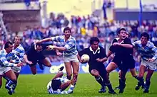 The All Blacks playing the Pumas during their 1985 tour of Argentina
