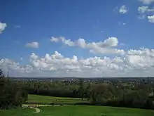 The Civil Parish of Newbury consists of the town and the suburbs of Wash Common, The City, West Fields, East Fields and Speenhamland. The modern conurbation of Newbury, however, with close bus and road links and almost contiguous development, may be taken to include the surrounding villages of Speen, Donnington, Shaw and Greenham.[22] Speen, which is now a suburb of western Newbury, is roughly equidistant between Bristol[23] and London.[24]