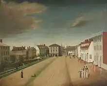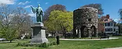 Newport was inhabited by a small group of abolitionists and free blacks. Reverend Samuel Hopkins, minister at Newport's First Congregational Church, has been called "America's first abolitionist".[16] Among subscribers to Hopkins' writings were 17 free black citizens, most of whom lived in Newport.[16] This community of freemen, including Newport Gardner, founded the Free African Union Society in 1780, the first African mutual aid society in America.[17]