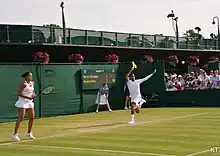 At the 2015 Wimbledon Championships, Kyrgios opened with straight-set victories over Diego Schwartzman and Juan Mónaco in the first and second rounds, respectively.[59][60] In the third round, despite losing the first set, he advanced past seventh seed Milos Raonic ––before losing to Gasquet in the fourth round, squandering set points in the fourth. He also played mixed doubles with Madison Keys, but only reached the second round