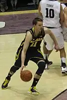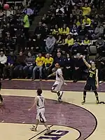 Stauskas began his college career with the expectation that he would be a sharpshooter based on his performance in three-point field goal drills in which he had raised the bar for the team.[27] In the championship rounds of the 2012 NIT Season Tip-Off tournament at Madison Square Garden on November 21 and 23, Michigan defeated Pittsburgh and Kansas State, respectively, to win the tournament.[28][29][30] On November 26, Stauskas earned Big Ten Freshman of the Week honors for his NIT tournament performance in which he averaged 12.5 points and 4.5 rebounds.[31][32][33] On November 27, Michigan defeated its first ranked opponent of the season, NC State (#18 AP Poll/#18 Coaches' Poll), in the ACC–Big Ten Challenge with a then-career-high 20 points from Stauskas in a 79–72 victory.[34] On December 1 against Bradley, Stauskas made his first career regular season start and posted a new career-high 22 points.[35][36] For his first two 20 point performances, he repeated as Big Ten Freshman of the Week on December 3.[37] On December 29, against Central Michigan, Stauskas posted 19 points on 5-for-8 three-point shooting. His 5 three-pointers and 7 rebounds were career-highs, earning him his third Big Ten Freshman of the Week on December 31.[38][39]