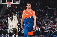 On July 10, 2015, Stauskas was traded to the Philadelphia 76ers along with Carl Landry, Jason Thompson, a future first round pick, and the rights to swap first round picks in 2016 and 2017, in exchange for the rights to Artūras Gudaitis and Luka Mitrović.[160] During the preseason, Stauskas was impaired by a right tibia stress reaction.[161] Although he felt recovered from the stress reaction by the beginning of the season, he missed the October 28 season opener with back spasms.[162] Stauskas debuted for the 76ers on October 30 against the Utah Jazz, scoring 12 points.[163] Stauskas moved into the starting lineup on November 2 against the Cleveland Cavaliers.[164][165] He posted a career-high-tying 15 points.[166][167] On November 7, Stauskas posted a career-high 18 points and career-high tying five assists against the Orlando Magic.[168]