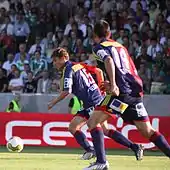 On 11 September, Jelavić scored his first Rangers goal against Hamilton Academical at New Douglas Park after he headed in a Kyle Lafferty cross.[12] On 21 September, Jelavić played against Dunfermline Athletic in the League Cup, scoring two goals in the game including an overhead kick in a 7–2 win for Rangers.[13] In Rangers next away match to Aberdeen at Pittodrie, Jelavić scored what the winning goal in a 3–2 Rangers win. Rangers were 2–0 down before coming back to win the match with Jelavić scoring the third Rangers goal. The next week Jelavić was injured in a match against Hearts at Tynecastle, suffering ankle ligament damage due to a tackle by Hearts midfielder Ian Black.[14] Jelavić claimed that Black had intended to injure him, a charge denied by his opponent, who apologized for the challenge.[14] He scored two goals in a match against Dundee United in October 2011.