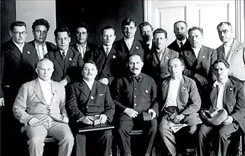 In late 1937, Stalin appointed Khrushchev as head of the Communist Party in Ukraine, and Khrushchev duly left Moscow for Kiev, again the Ukrainian capital, in January 1938.[49] Ukraine had been the site of extensive purges, with the murdered including professors in Stalino whom Khrushchev greatly respected. The high ranks of the Party were not immune; the Central Committee of Ukraine was so devastated that it could not convene a quorum. After Khrushchev's arrival, the pace of arrests accelerated.[50] All but one member of the Ukrainian Politburo Organizational Bureau and Secretariat were arrested. Almost all government officials and Red Army commanders were replaced.[51] During the first few months after Khrushchev's arrival, almost everyone arrested received the death penalty.[52]