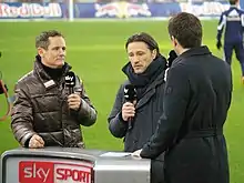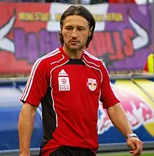 After his retirement from professional football, Kovač became coach of the second squad of FC Red Bull Salzburg, Red Bull Juniors, from 16 June 2009[12] to 7 April 2011.[13] In the 2009–10 season, he finished in sixth place[14] and were knocked out in the Austrian Cup in the second round in a shootout.[15] He was with the second team until 7 April 2011.[13] His final match was a 1–1 draw against SV Seekirchen.[16] In 2011, he was promoted to being assistant coach of the first squad[17] together with Ricardo Moniz as head coach. After Moniz resigned as a first-team coach in June 2012, Kovač was one of the favourites for taking his position. However, the position went to Roger Schmidt and Kovač subsequently left Salzburg.
