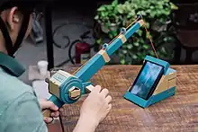 In January 2018, Nintendo announced Nintendo Labo, a child-oriented platform that combines games coupled with do-it-yourself cardboard projects that attach or wrap around the Switch Console and Joy-Con, effectively creating toys around the Switch hardware to interact with games. These cardboard units, which may also include string, rubber bands, and other pieces, are referred to as Toy-Con. The game software provides instructions for the Toy-Con construction and provides the interface to control the Toy-Con. Such examples given include a remote-controlled "car", where the two Joy-Con attach to the car and their vibration feedback provide the motion for the car, controlled from the Switch, a fishing rod where the Joy-Con are part of the reel and handle of the rod and their motion controls used to simulate the act of fishing in the mini-game, and a small toy piano.[123]