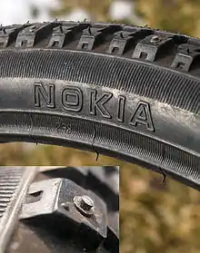 In 1974 the production of bicycle tyres and inner tubes was centered in a new factory in Lieksa, Finland.[5] In 2004, Nokian Tyres sold its bicycle tyre business to Suomen Rengastehdas Oy for €3.6 million.[11][12] This successor company remained one of the few manufacturers of tungsten carbide-studded snow tyres for bicycles.[13] Suomen Rengastehdas continued to produce bicycle tyres until the bankruptcy of the company on 20 May 2019.[14] In September 2019 LieksaTyres Oy[15] acquired the bankruptcy estates including model rights, immaterial rights and production lines of Suomen Rengastehdas and continued the production of promising product categories including bicycle summer tyres.[16]