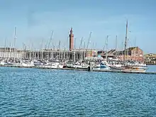 The Port of Immingham is the UK's largest port by tonnage, handling around 46 million tonnes per year.[10] It has DFDS freight routes to Brevik, Cuxhaven, Esbjerg, Gothenburg, Rotterdam and Zeebrugge.[11] The Port of Grimsby is a major car importation hub, along with being an offshore wind farm servicing hub.