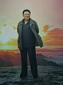 The North Korean cult of personality surrounding its ruling family, the Kim family,[2] has existed in North Korea for decades and can be found in many examples of North Korean culture.[3] Although not acknowledged by the North Korean government, many defectors and Western visitors state there are often stiff penalties for those who criticize or do not show "proper" respect for the former leaders of the country, Kim Il Sung and Kim Jong Il,[4][5] officially referred to as "eternal leaders of Korea". The personality cult began soon after Kim Il Sung took power in 1948, and was greatly expanded after his death in 1994.