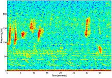 In 2017, sophisticated and painstaking research by NOAA scientist Jessica L. Crance and other NOAA scientists was able to definitively attribute gunshots to North Pacific right whales, and found that among the animals sampled gunshots were heard ~50 times more frequently than upcalls.[36] Because gunshots to be used much more and are less likely to be mistaken for a humpback call, this should improve the detectability of right whales in the North Pacific using passive acoustic monitoring, and improve the ability to locate individual whales from ships as well.[36]