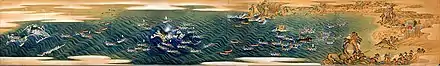 On the west side of the North Pacific, the situation was different because the Japanese had a tradition of hunting right whales from shore in Japan with the use of nets which had started centuries before the arrival of American whalers. In Japanese shore-based net whaling, right whales were the prime target, and the whale fisheries were devastating to the stocks[48] as catch quantities declined greatly in relatively short periods,[49] and the effect of the industries were more notable on the whale populations than the later American whaling,[50] resulting not only in financial solvencies of many whaling groups but also in disputes between feudal domains in western Japan that required the shogunate itself to settle.[51] Among this, it has been revealed that Japanese people have been trying to shift responsibility of whale declines to the later American whalers to control public opinions since at the end of the Edo period.[52]