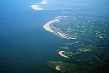 The eastern and western coasts of the North Sea are jagged, formed by glaciers during the ice ages. The coastlines along the southernmost part are covered with the remains of deposited glacial sediment.[1] The Norwegian mountains plunge into the sea creating deep fjords and archipelagos. South of Stavanger, the coast softens, the islands become fewer.[1] The eastern Scottish coast is similar, though less severe than Norway. From north east of England, the cliffs become lower and are composed of less resistant moraine, which erodes more easily, so that the coasts have more rounded contours.[60][61] In the Netherlands, Belgium and in East Anglia the littoral is low and marshy.[1] The east coast and south-east of the North Sea (Wadden Sea) have coastlines that are mainly sandy and straight owing to longshore drift, particularly along Belgium and Denmark.[62]