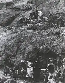 The royalists under the command of Prince Mohamed's objective was to cut the Egyptians' line and force them to withdraw. They intended to take over the garrisons along this line and establish positions from which they could interdict the Egyptian movement. They had prepared the attack with the help of the Nahm tribe, who tricked the Egyptians into believing that they were their allies and would take care of the mountain pass known as Wadi Humaidat themselves. The royalist deal was that the Nahm would be entitled to loot the ambushed Egyptians. The Egyptians may have suspected something was up, as they sent a reconnaissance aircraft over the area a day before the attack. The royalists thus occupied two mountains known as Asfar and Ahmar and installed 75-mm guns and mortars overlooking the wadi.[59] On April 15, the day after the last Egyptian convoy went through, the royalists launched a surprise attack. Both forces numbered at only a couple of thousands. The guns positioned on Asfar and Ahmar opened fire, and then the Nahm came out from behind the rocks. Finally, Prince Mohamed's troops followed. This time, the royalists' operation was fully coordinated by radio. Some of the Egyptians surrendered without resistance, others fled to Harah 800 yards to the north. Both sides brought reinforcements and the battle shifted between Harf and Hazm.[59]