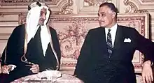 As part of the Khartoum Resolution of August, Egypt announced that it was ready to end the war in Yemen. Egyptian Foreign Minister, Mahmoud Riad, proposed that Egypt and Saudi Arabia revive their Jeddah Agreement of 1965. Faisal expressed satisfaction with Nasser's offer, and al-Badr promised to send his troops to fight with Egypt against Israel, should Nasser live up to the Jeddah agreement[83] Nasser and Faisal signed a treaty under which Nasser would pull out his 20,000 troops from Yemen, Faisal would stop sending arms to al-Badr, and three neutral Arab states would send in observers. Sallal accused Nasser of betrayal.[84] Nasser unfroze more than $100 million worth of Saudi assets in Egypt, and Faisal denationalized two Egyptian-owned banks that he had taken over earlier that year.[85] Saudi Arabia, Libya, and Kuwait agreed to provide Egypt with an annual subsidy of $266 million, out of which $154 million was to be paid by Saudi Arabia.[86]