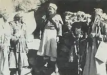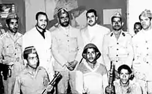 Al-Badr and his personal servants managed to escape through a door in the garden wall in the back of the palace. Because of the curfew, they had to avoid the main streets. They decided to escape individually and meet in the village of Gabi al Kaflir, where they were reunited after a 45-minute walk.[25] Sallal had to defeat a fellow revolutionary, Al-Baidani, an intellectual holding a doctorate degree, who did not share Nasser's vision. On September 28, there were radio broadcasts announcing al-Badr's death.[3] Sallal gathered tribesmen in San'a and proclaimed: "The corrupt monarchy which ruled for a thousand years was a disgrace to the Arab nation and to all humanity. Anyone who tries to restore it is an enemy of God and man!"[26] By then, he had learned that al-Badr was still alive and had made his way to Saudi Arabia.[26]