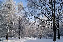 Nowa Huta is one of the largest planned socialist realist settlements or districts ever built (another being Magnitogorsk in Russia) and "one of the most renowned examples of deliberate social engineering" in the entire world.[1] Built as a utopian ideal city, its street hierarchy, layout and certain grandeur of buildings often resemble Paris or London. The high abundance of parks and green areas in Nowa Huta make it the greenest corner of Kraków.[2]