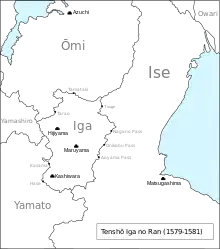 | Battles/wars | Battle of Akatsuka Battle of Muraki Battle of Kiyosu Battle of Inō Battle of Ukino Battle of Okehazama Mino Campaign Ise Campaign Omi Campaign Siege of Kanegasaki Battle of Anegawa Ishiyama Hongan-ji War Siege of Nagashima Siege of Mount Hiei Siege of Ichijodani Siege of Odani Battle of Nagashino Battle of Tedorigawa Tenshō Iga War Honnō-ji Incident see below |