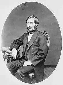 Mowat was a member of the Great Coalition government of 1864 and was a representative at that year's Quebec Conference, where he helped work out the division of powers between the federal and provincial governments. On November 14, 1864, he was appointed to the judiciary as Vice-Chancellor of the Court of Chancery of Upper Canada,[5] He held this position until he was appointed premier on October 25, 1872. One of the more notable cases during his time on the Court was Dickson v Burnham in 1868,[6] whose underlying jurisprudence would be altered during his later time as Premier, with the passage of the Rivers and Streams Act, 1884.[7]