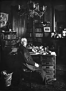 Holmes's fame continued through his later years. The Poet at the Breakfast-Table was published in 1872.[116] Written fifteen years after The Autocrat, this work's tone was mellower and more nostalgic than its predecessor; "As people grow older," Holmes wrote, "they come at length to live so much in memory that they often think with a kind of pleasure of losing their dearest possessions. Nothing can be so perfect while we possess it as it will seem when remembered".[117] In 1876, at the age of seventy, Holmes published a biography of John Lothrop Motley, which was an extension of an earlier sketch he had written for the Massachusetts Historical Society Proceedings. The following year he published a collection of his medical essays and Pages from an Old Volume of Life, a collection of various essays he had previously written for The Atlantic Monthly.[118] He was elected as a member to the American Philosophical Society in 1880.[119] He retired from Harvard Medical School in 1882 after thirty-five years as a professor.[120] After he gave his final lecture on November 28, the university made him professor emeritus.[121]