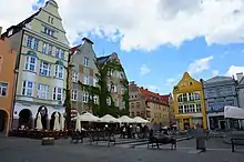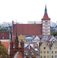 The most important sights of the city include the medieval Old Town and the St. James Pro-cathedral (former St. James Parish Church), which dates back more than 600 years. The market square is part of the European Route of Brick Gothic and the pro-cathedral is regarded as one of the greatest monuments of Gothic architecture in Poland.[7]