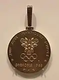 | 1992 | Albertville, France | Obverse: Glass set into the metal, showing the Olympic rings in front of mountains Reverse: Rear side of glass section |