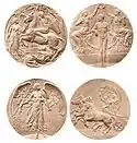 | 1908 | London, Great Britain | Obverse: An athlete receiving a laurel crown from two female figures Reverse: Saint George atop a horse Edge: "Vaughton", event name and winner |