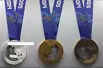 | 2010 | Vancouver, British Columbia, Canada | Obverse: An individually cropped section of a large First Nations artwork (orca or raven), making each medal unique Reverse: Emblem of the Games and event details Shape: Circular but with undulations stopping it from being flat |