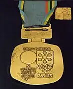 | 1984 | Sarajevo, Yugoslavia | Obverse: Event logo with host details surrounding it Reverse: An athlete's head wearing a laurel crown Shape: Circular but set in a large rounded rectangular shape |
