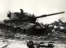 Subsequently, at around 16:00, the 603rd was regrouping outside the minefield when it was attacked by a company of tanks from Kibrit East (codenamed Putzer by the Israelis), a fortification of the Bar Lev located on the Bitter Lake. The battalion had been reinforced with a tank hunting detachment from the 7th Division, and managed to destroy two tanks and three armored vehicles before the Israelis withdrew. Afterwards, its original assignment was canceled and it was ordered to capture the Kibrit East position (Fort Putzer). It occupied the abandoned position on 9 October which the battalion—despite being cut off and coming under numerous attacks—held for the remainder of the war.[74] As for the 602nd battalion, it began to move eastwards some time after dusk, and stumbled upon an Israeli battalion of 35 tanks along Artillery Road, some 15 kilometers (9.3 mi) from the Bitter Lake. The battalion's ten PT-76s with 76 mm guns were outmatched and outnumbered by the heavier Israeli M48 Pattons with 105 mm guns. The manually guided Saggers were difficult to operate at night, and Israeli tanks were employing blinding xenon floodlights. Caught in the open Sinai desert, the 602nd was defeated and lost many of its tanks and armored vehicles, along with significant casualties. The remaining troops retreated to Third Army lines.[75] Some units may have reached their objectives, although this is disputed.[note 1]