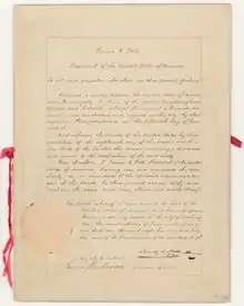 The Oregon Treaty[1] is a treaty between the United Kingdom and the United States that was signed on June 15, 1846, in Washington, D.C. The treaty brought an end to the Oregon boundary dispute by settling competing American and British claims to the Oregon Country; the area had been jointly occupied by both Britain and the U.S. since the Treaty of 1818.[2]