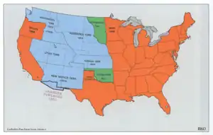 The principal political battle leading to Southern secession was over whether slavery would be permitted to expand into the Western territories destined to become states. Initially Congress had admitted new states into the Union in pairs, one slave and one free. This had kept a sectional balance in the Senate but not in the House of Representatives, as free states outstripped slave states in numbers of eligible voters.[4] Thus, at mid-19th century, the free-versus-slave status of the new territories was a critical issue, both for the North, where anti-slavery sentiment had grown, and for the South, where the fear of slavery's abolition had grown. Another factor leading to secession and the formation of the Confederacy was the development of white Southern nationalism in the preceding decades.[5] The primary reason for the North to reject secession was to preserve the Union, a cause based on American nationalism.[6]
