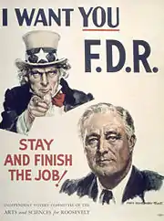 Part of the Works Progress Administration, the Federal Theatre Project (1935–39) was a New Deal program to fund theatre and other live artistic performances and entertainment programs in the United States during the Great Depression. It was created as a relief measure to employ artists, writers, directors and theatre workers. Under national director Hallie Flanagan it was shaped into a truly national theatre that created relevant art, encouraged experimentation and innovation, and made it possible for millions of Americans to see live theatre for the first time.[35]